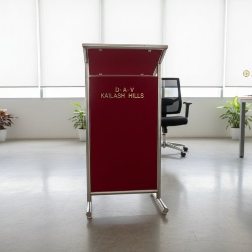 The top board or display panel can be customized with engraved logos, company names, welcome messages, or institutional branding. It can also be fitted with a microphone stand or reading platform for speeches and presentations. The smooth polished surface gives a clean and professional look while being easy to maintain.