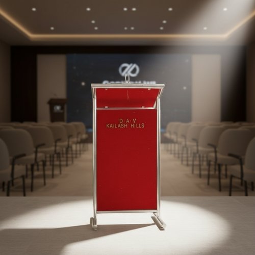 This Stainless Steel and Brass Podium Stand Board not only serves as a speaking platform but also acts as a branding and decorative element. It enhances the presence of the speaker while reflecting professionalism and class.